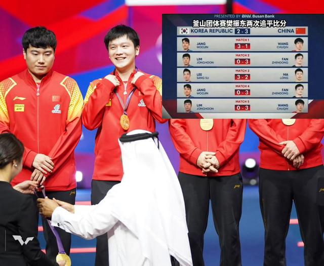 那届比赛,堪称樊振东职业生涯的“封神之战”之一。在半决赛对阵东道主韩国队的生死战中,国乒男团一度陷入绝境,是樊振东以定海神针般的表现力挽狂澜。他两次出战,分别以3比0干净利落地击败林钟勋和张禹珍,两次将大比分追平,硬生生将比赛拖入决胜盘,最终帮助国乒以3比2逆转晋级。随后的决赛中,中国队3比0战胜法国队成功卫冕,实现世乒赛11连冠。